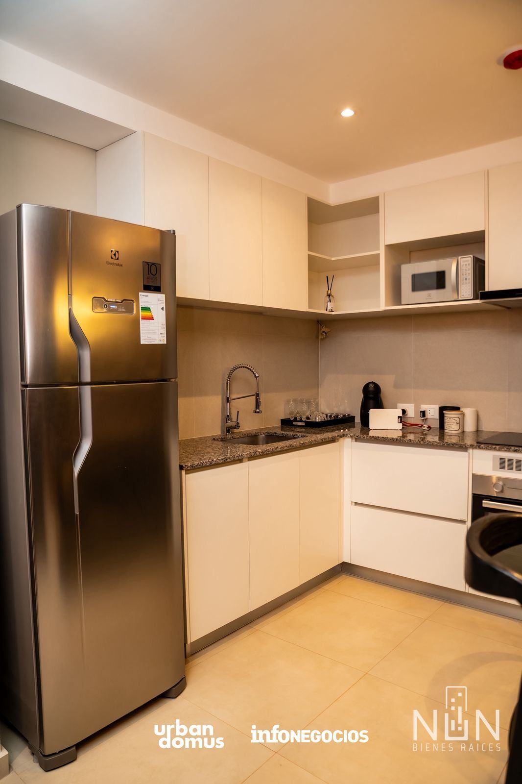 El departamento, con una superficie total de 40 m², cuenta con un dormitorio, un baño, una cocina completamente amoblada y equipada con horno, anafe y campana, y un balcón que complementa el espacio. Cada unidad está climatizada en los dormitorios y el living, y se entrega con termocalefones, espejos y box de baño con mampara, así como placares en los dormitorios. La primera torre se prevé entregar en marzo de 2026, y ofrece una financiación flexible con una entrega mínima del 10%, permitiendo financiar el saldo en plazos de 60 o 120 meses.